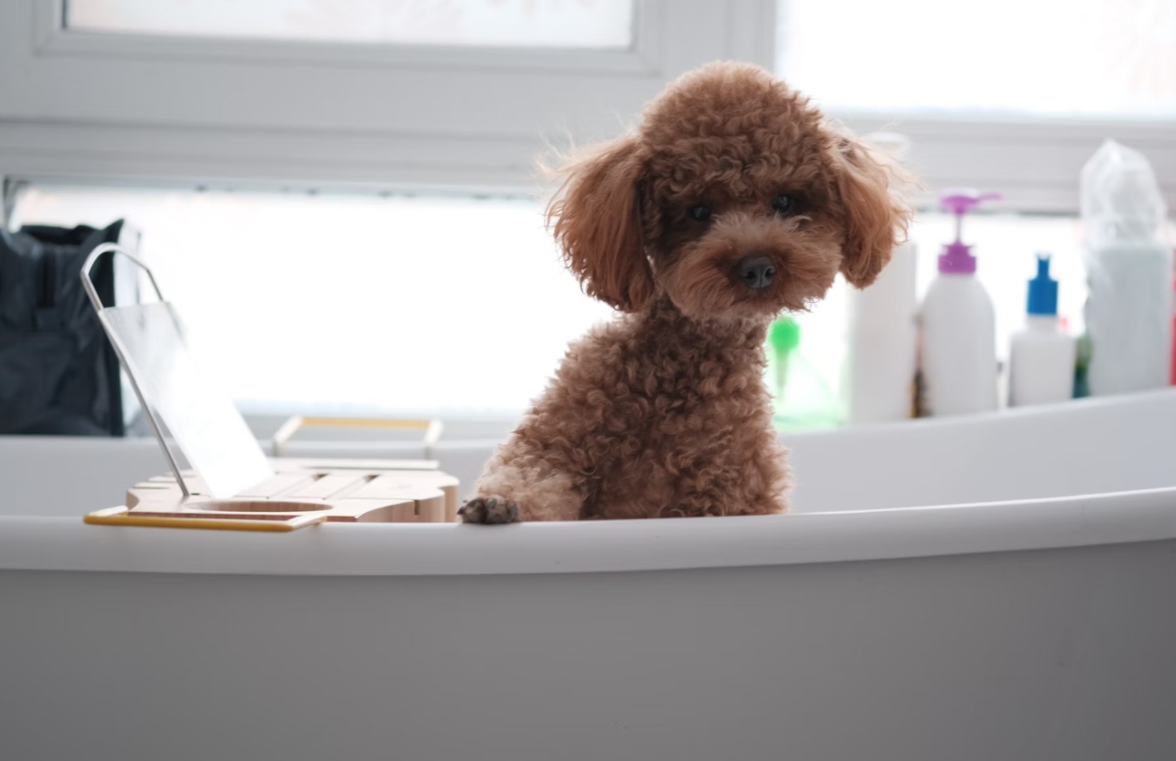 バスタブなどにぬるま湯を貼って、その中に溶かして使うタイプの沐浴タイプのシャンプーは、シャンプーが使えない犬や老犬におすすめ。皮膚への刺激が少なく、お湯の中でマッサージするようにして使用します。