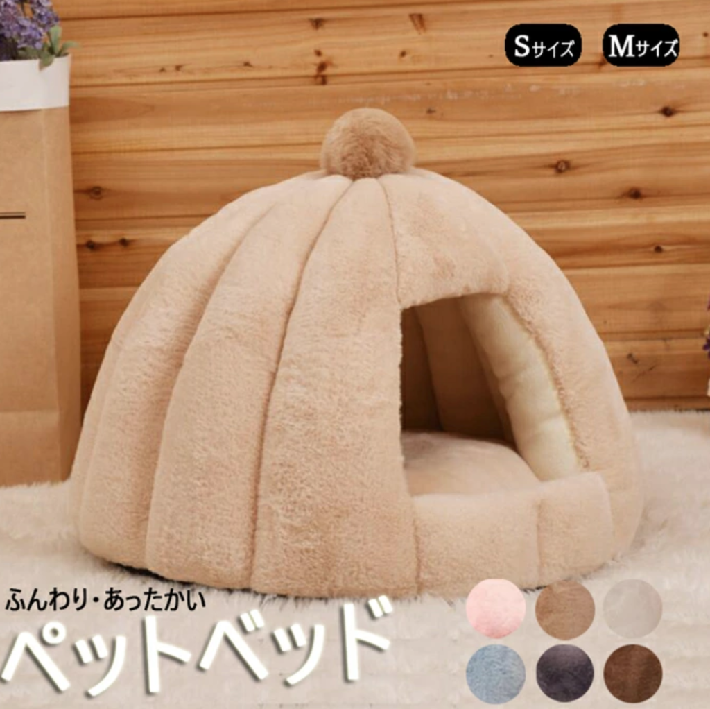 丸っこい形が可愛すぎるペット用ドームハウス。ふわふわな素材で暖かく、ついつい入ってしまいたくなる可愛らしさ。ドーム部分と床面は別のクッションになっているので、床面だけ洗いたいという場合にも便利です。