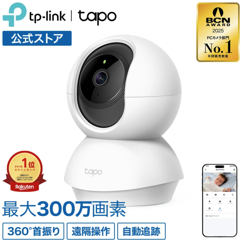 広範囲が撮影できるTapoはペットカメラ人気のモデル。暗い場所での動きもしっかりと撮影でき、自動追尾や鳴き声検知などペットの見守りに必要な機能が装備されています。アプリも使いやすく、動体検知直前までさかのぼって記録できるのが便利です。