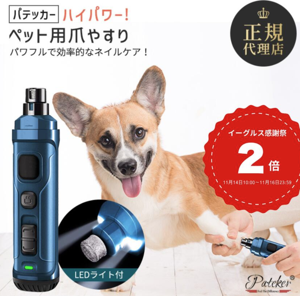 小型犬から大型犬まで幅広い犬種に対う出来る電動爪ヤスリ。静音・低振動モーターでワンちゃんへのストレスを軽減します。LEDライトで爪の状態をハッキリと確認できるため安全に使えますね。スピードの調節や、パワフルなダイヤモンドビットホイールなど安全で素早くケアできるこだわりの爪ヤスリです。