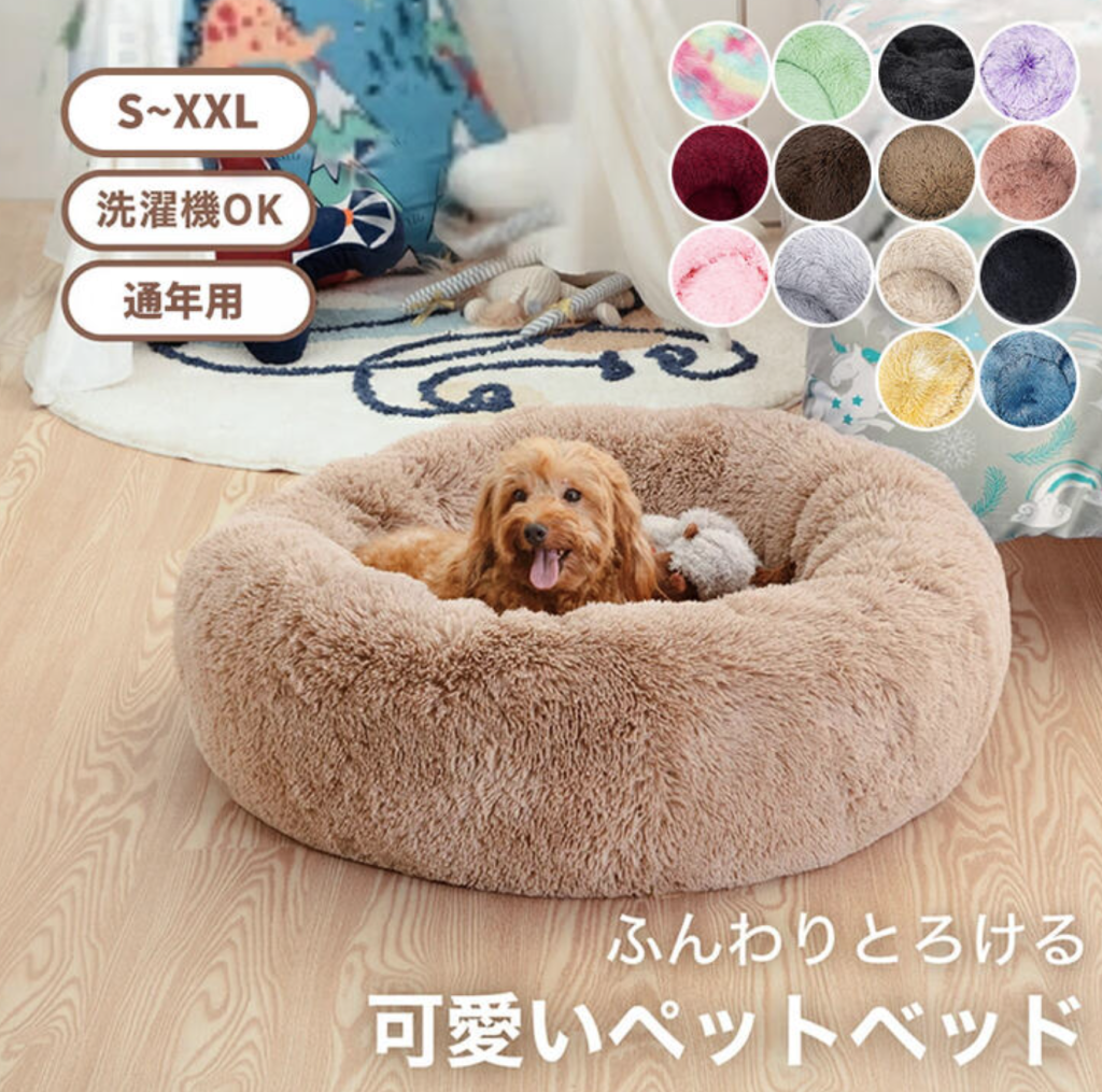 安心感のある丸型ベッドでふわふわの肌触りが快適な寝心地を実現する犬用ベッド。毛足の長いシャギー素材が温かく包み込みます。丸洗いOKだから清潔で型崩れしにくいので安心です。身体を丸めて寝るワンちゃんや小型犬におすすめ。